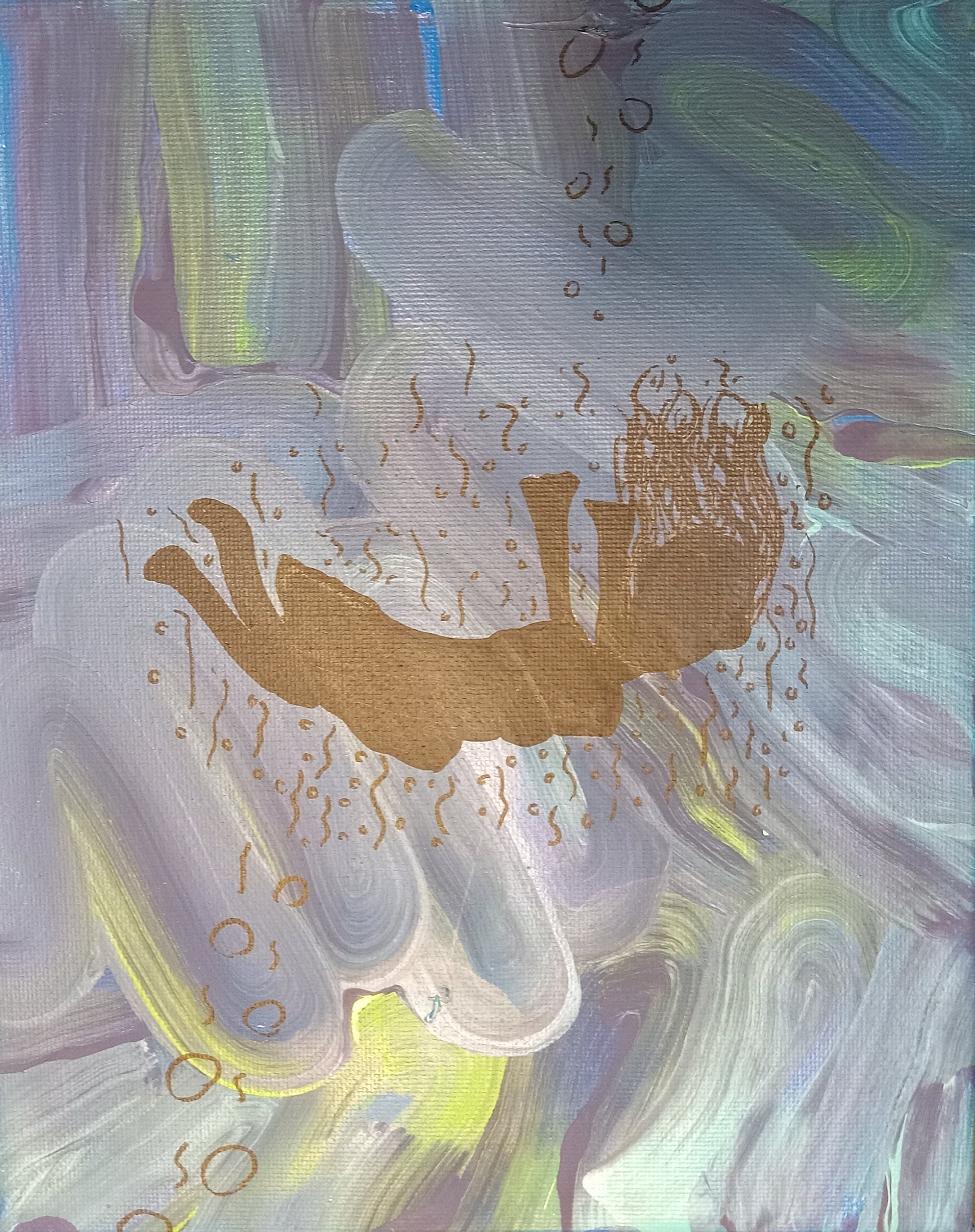 The painting is of a girl sinking in a body of water, to show her drowning in her sadness.