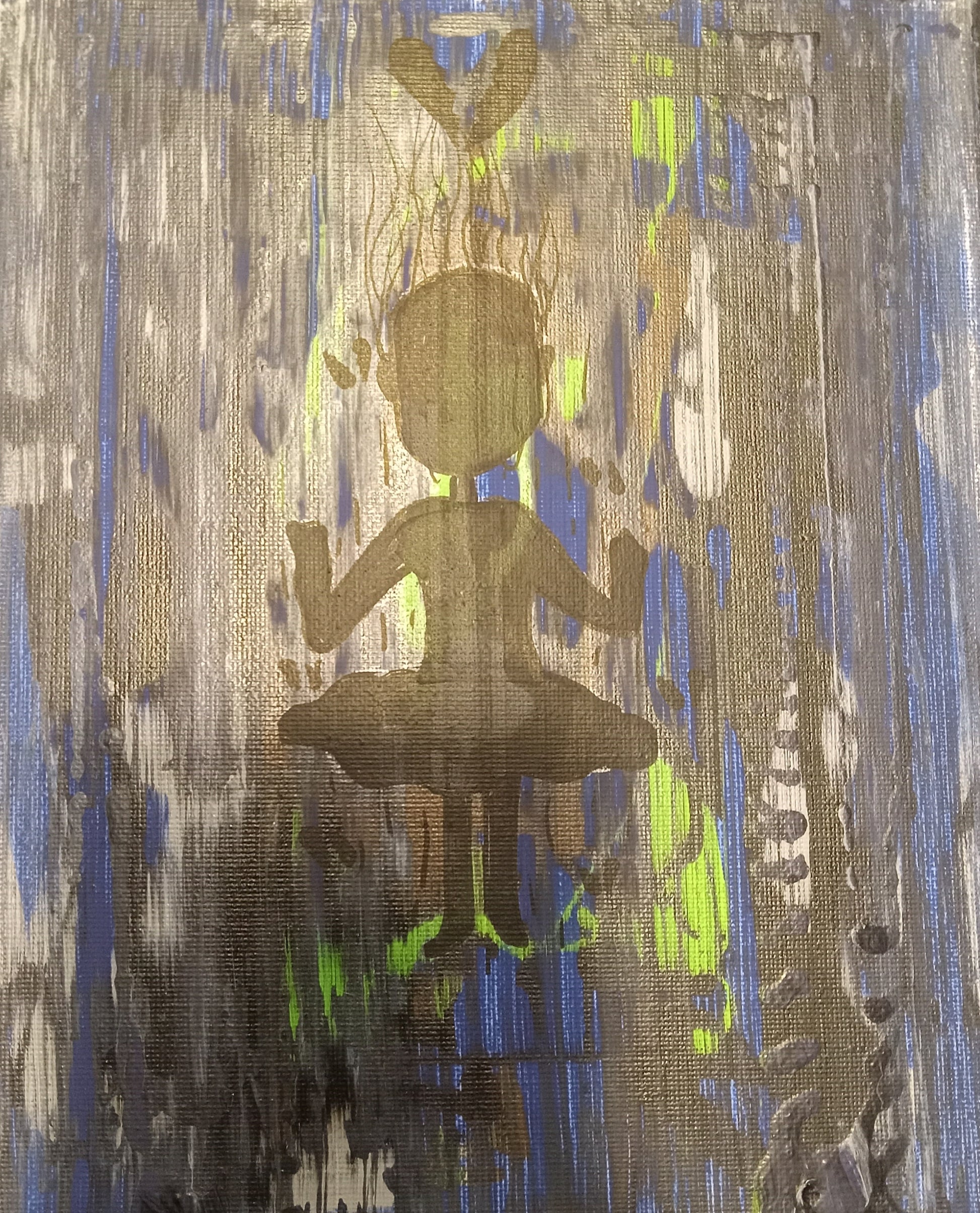 The painting conveys the painful feeling of falling out of love and how it's a reverse process to falling into it.
