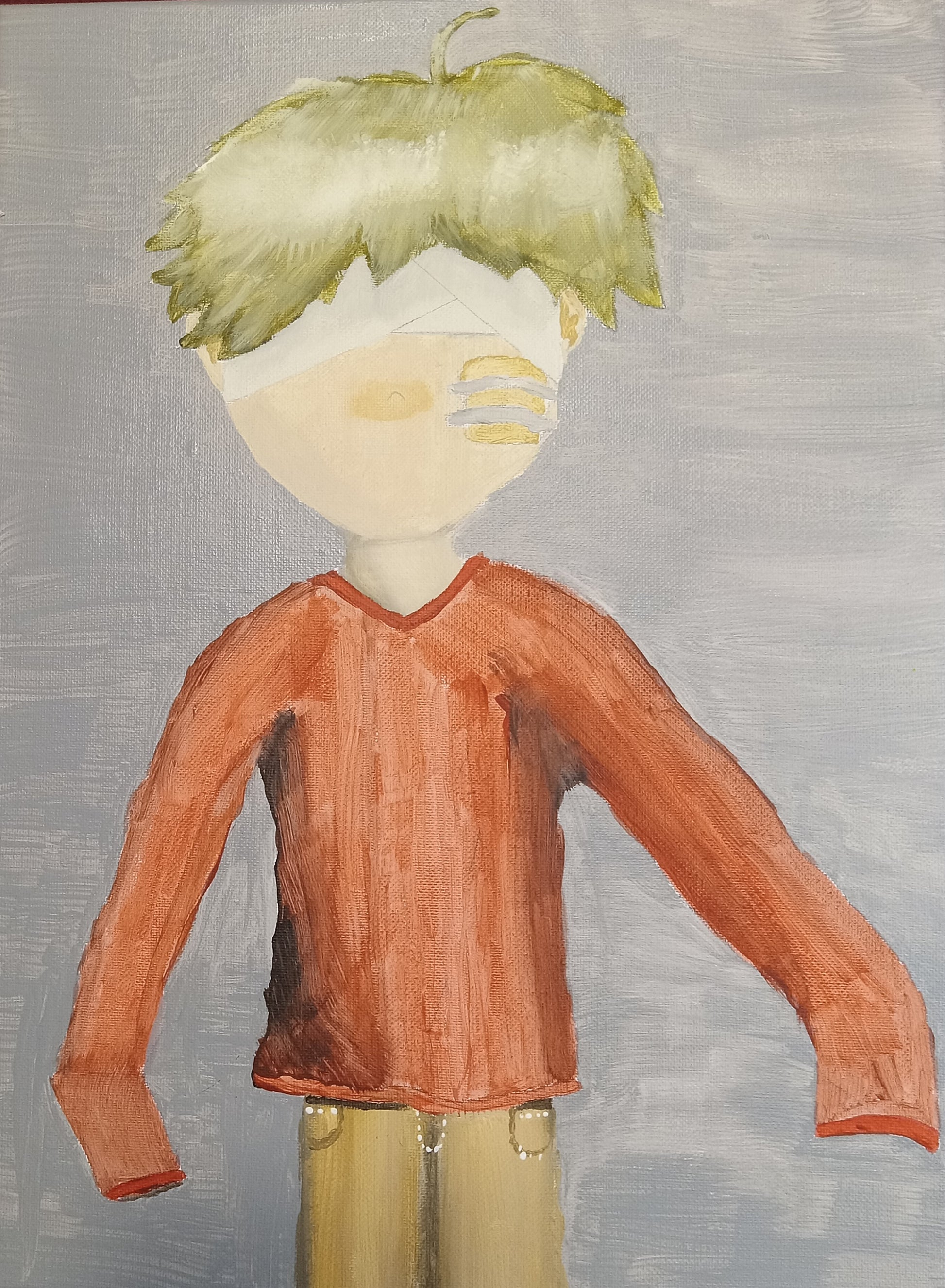 This painting is of a mouthless boy who has bandages on his face. The boy's lack of mouth shows his inability to voice his problems.