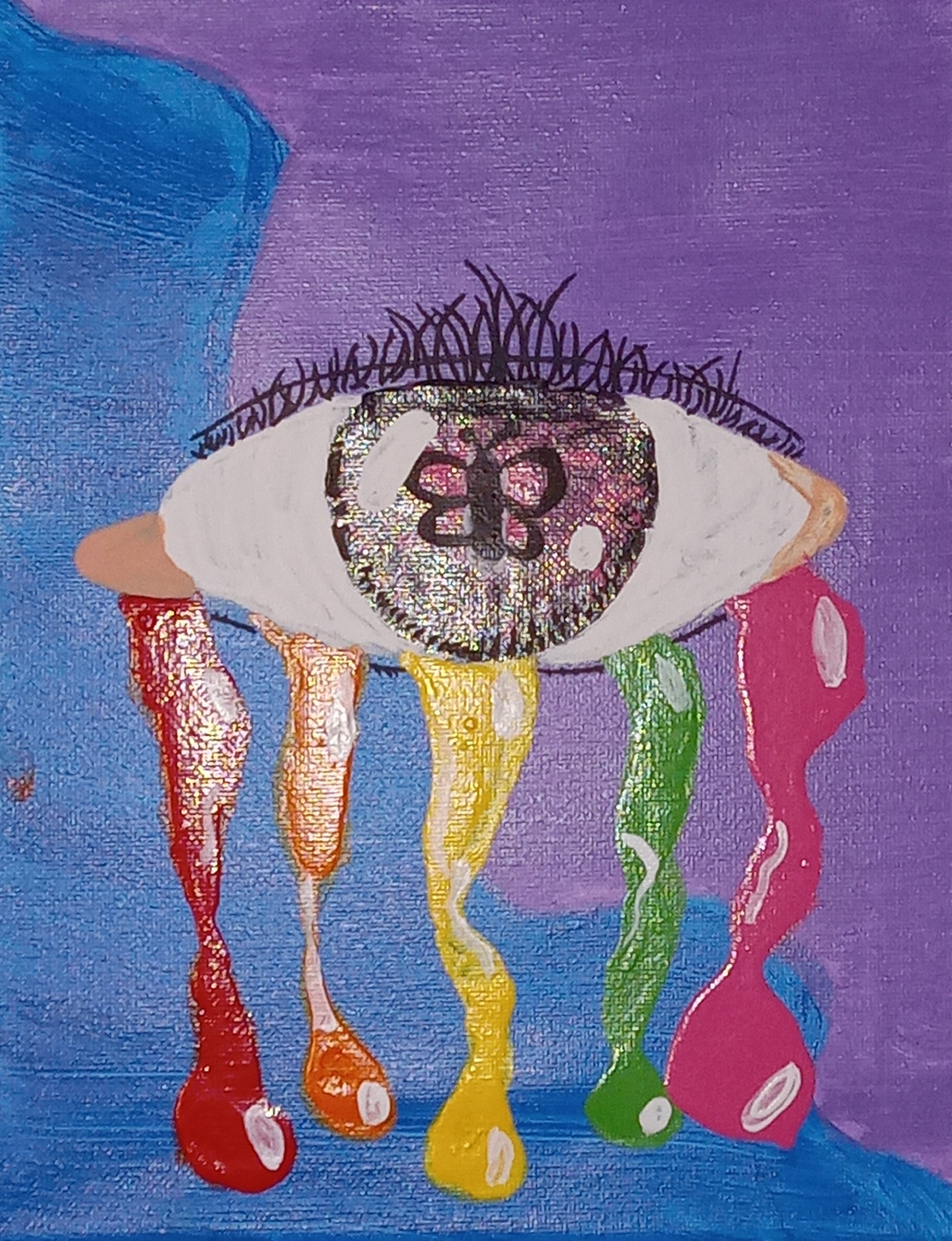 The painting depicts an eye with numerous surreal features that show a creative worldview.