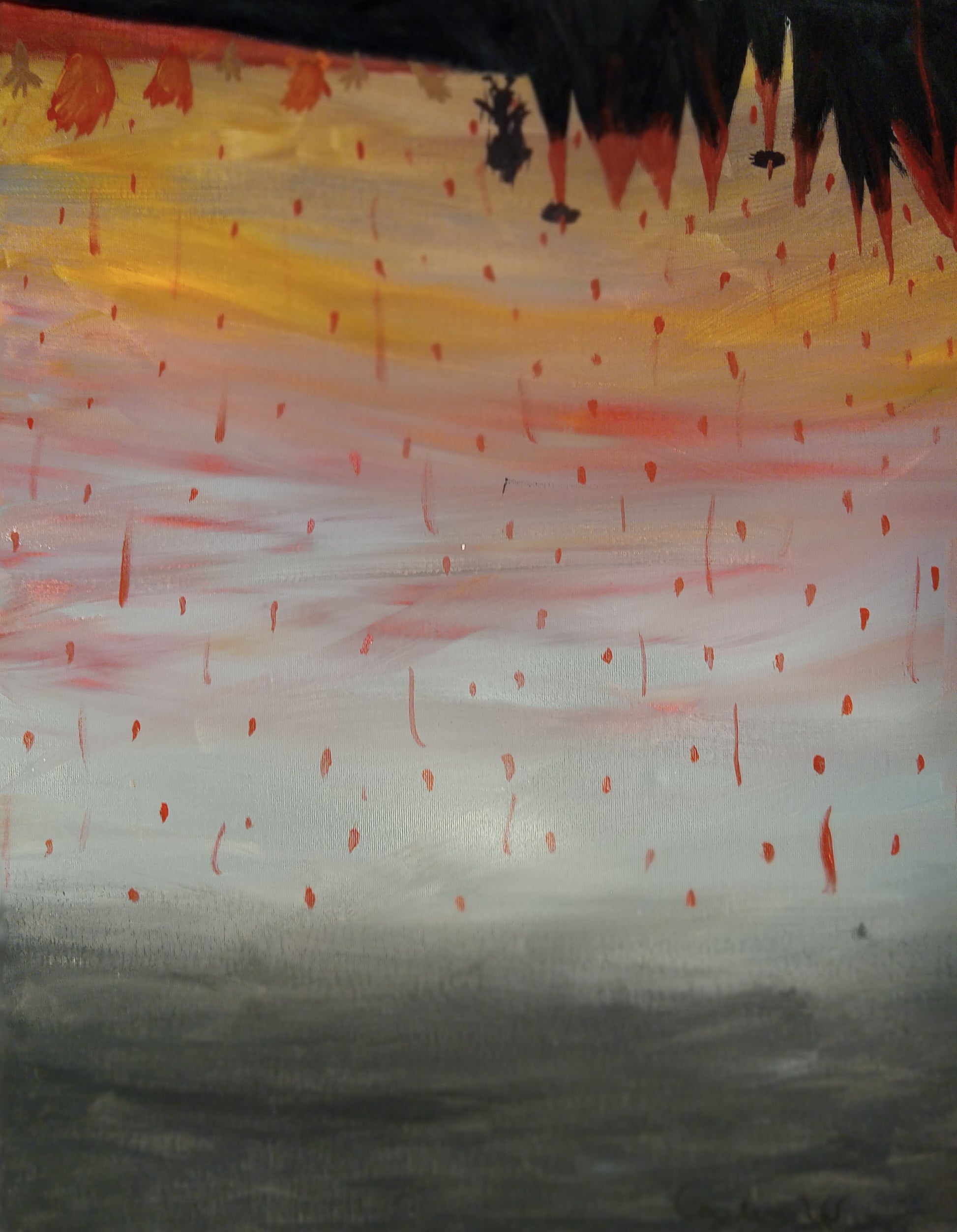 This painting depicts the harsh feeling of being ripped from your fantasy world and into a cruel reality.